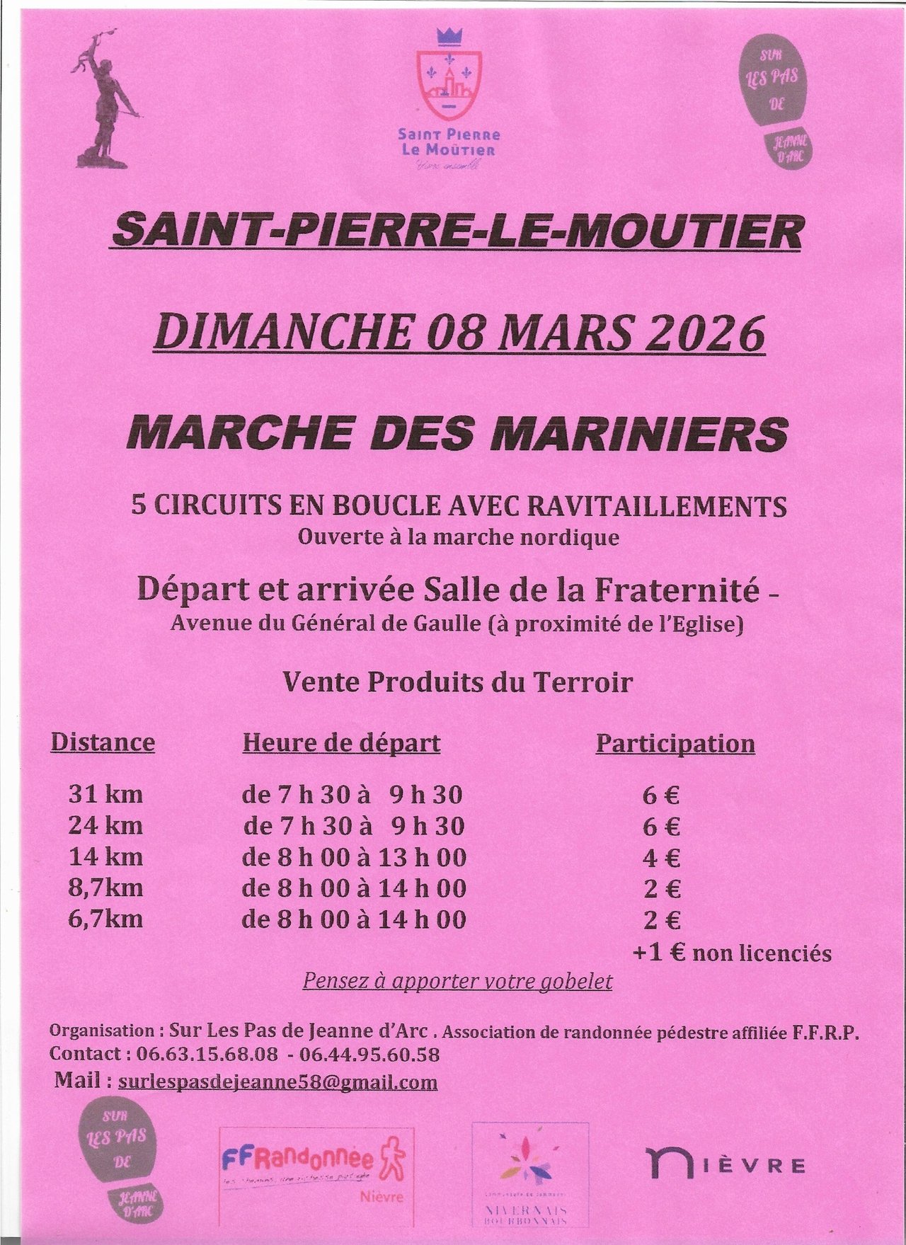 🌿🥾 Envie de prendre l’air et de découvrir les chemins autour de Saint-Pierre-le-Moutier ? La Marche des Mariniers revient avec plusieurs parcours pour tous les niveaux !