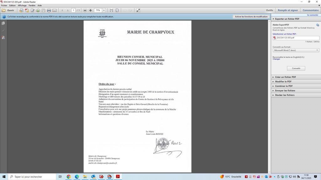 Prochaine réunion du conseil municipal le jeudi 06 novembre 2025 à 19h00