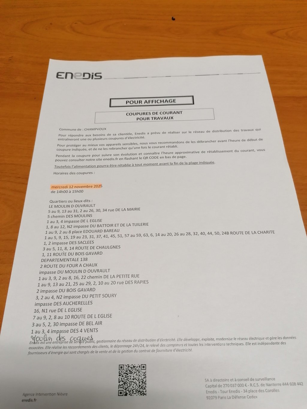 AVIS COUPURE DE COURANT LE 12.11.2025