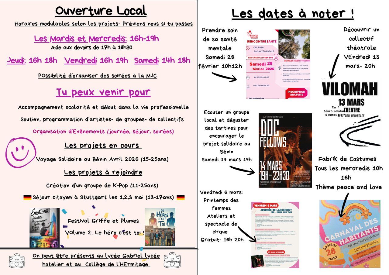 La MJC de Tain l’Hermitage propose des activités (hors vacances scolaires)