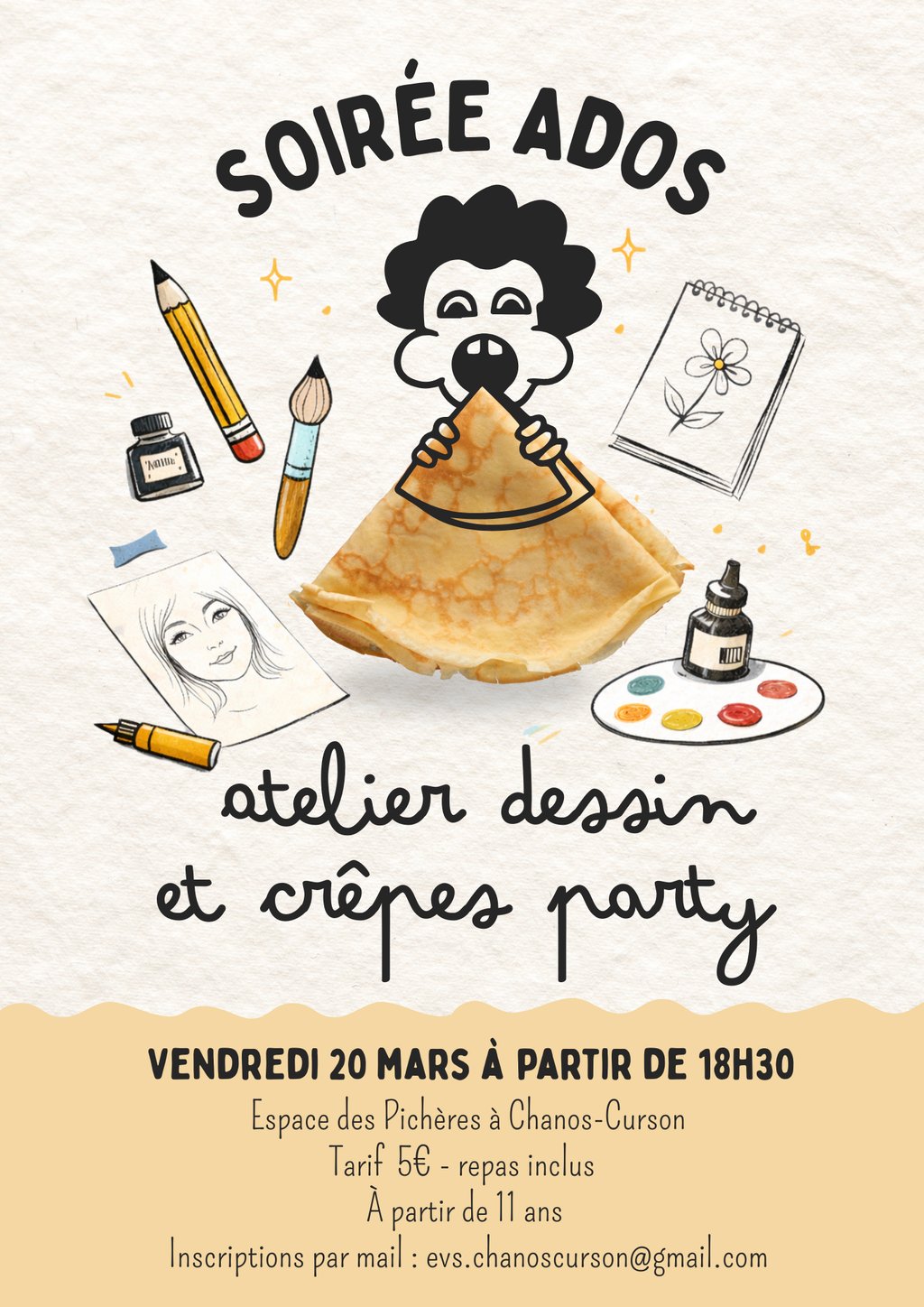 SOIREE ADOS ATELIER INITIATION DESSIN ET CREPE PARTY