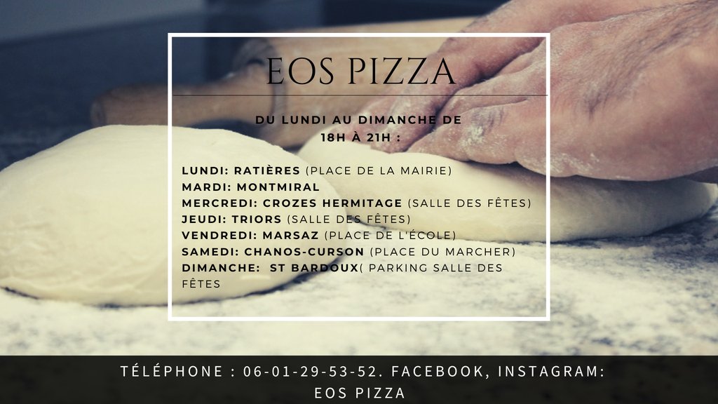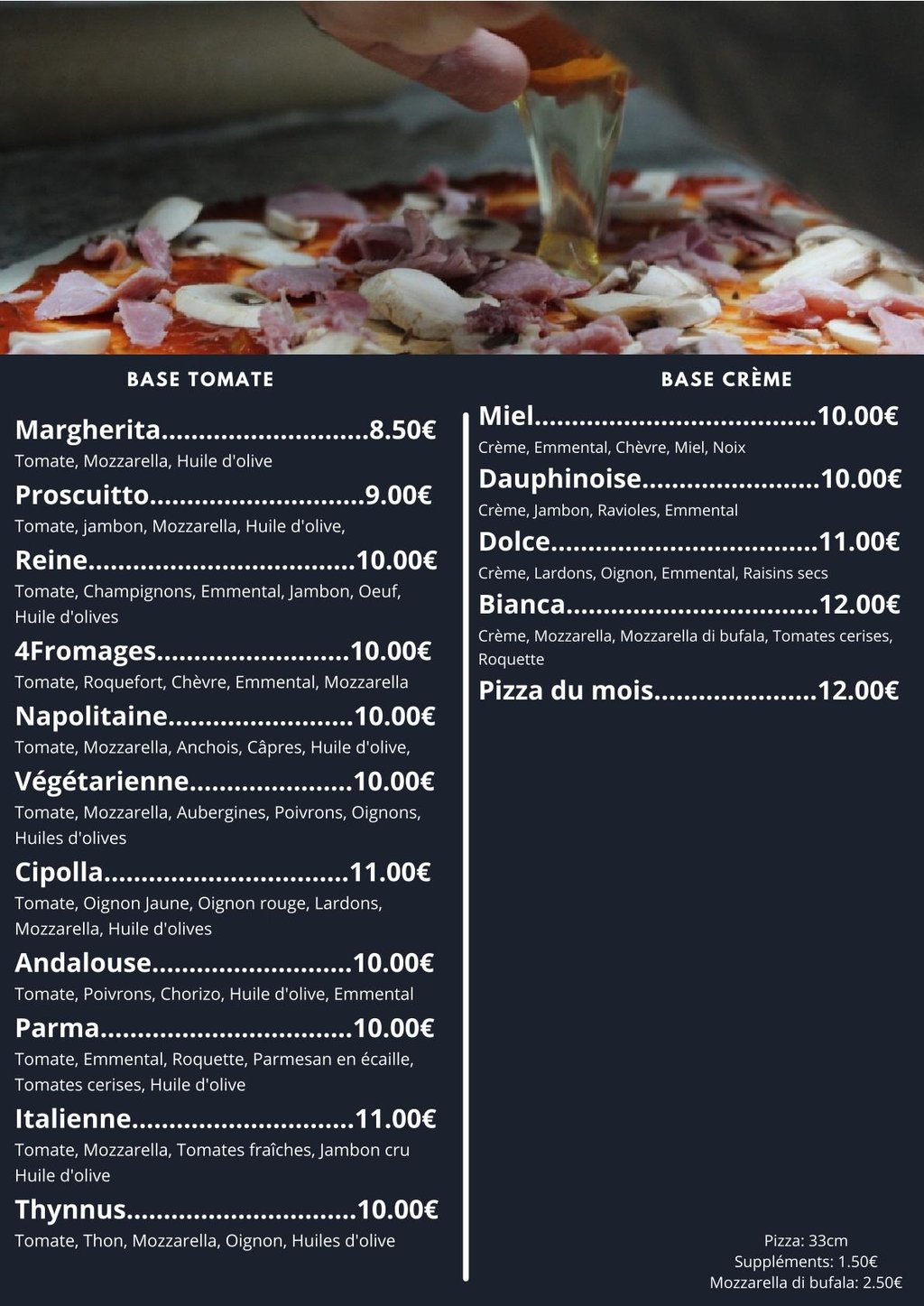 Vente à emporter de pizza élaborée avec des produits frais, locaux et de nos régions.