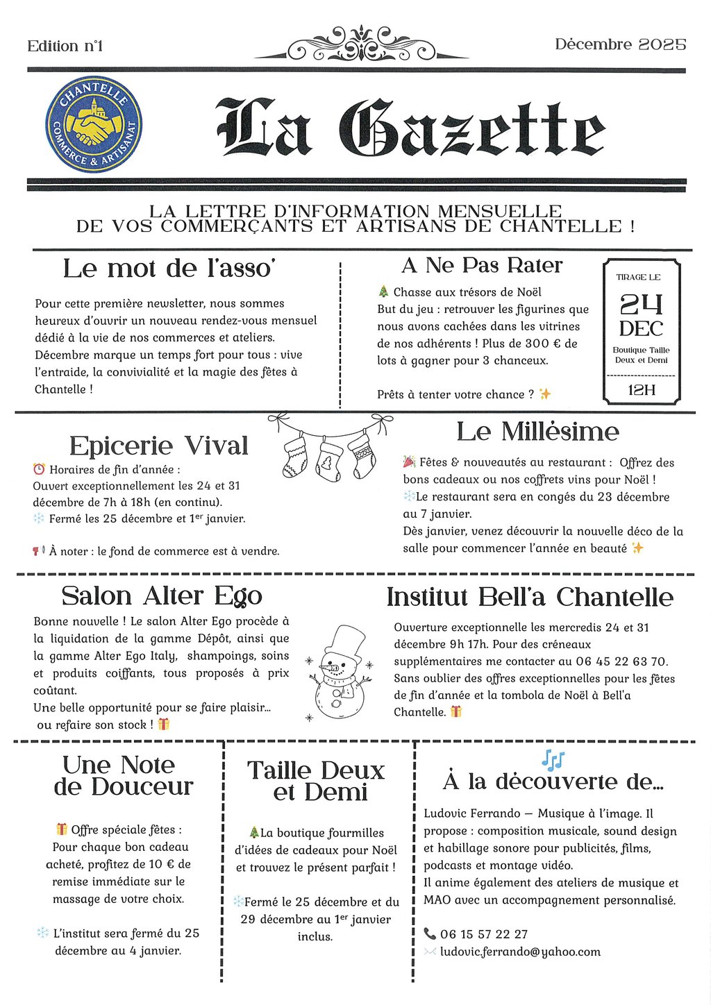 Lettre d'information Mensuelle de vos Commerçants et artisans de CHANTELLE .