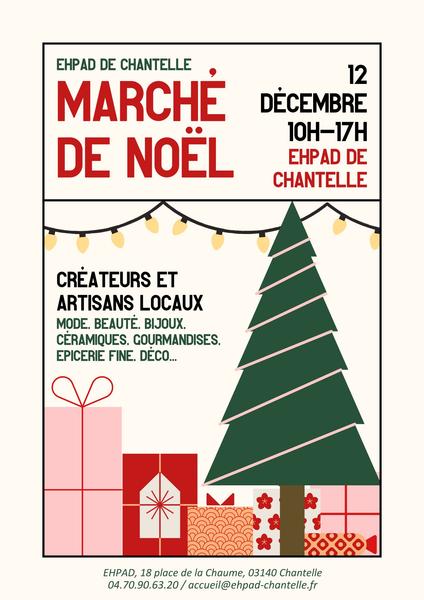 Vivez la magie des fêtes au Marché de Noël de l’EHPAD de Chantelle ! Créateurs, gourmandises, idées cadeaux et ambiance chaleureuse vous attendent. Une belle sortie pour préparer Noël en famille