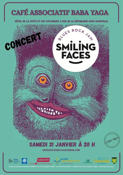Vibrez au rythme du blues rock avec Smiling Faces ! Une soirée explosive au Café Associatif Baba Yaga pour une jam session électrisante. Laissez-vous emporter par des riffs enflammés et une ambiance conviviale !