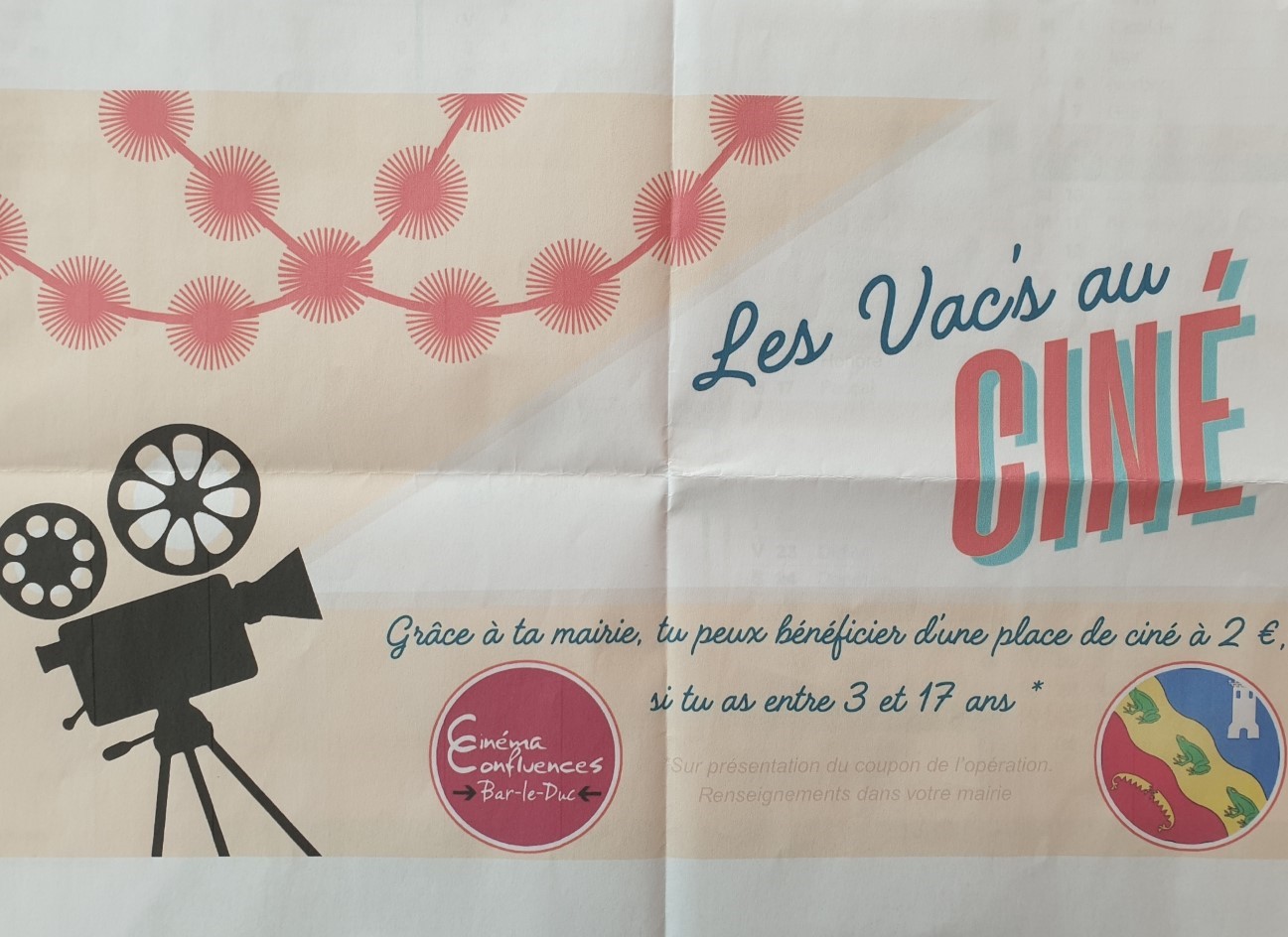La mairie en partenariat avec le cinéma confluence de Bar le Duc vous propose des places de cinéma à 2€ pour les enfants de Chanteraine entre 3 et 17 ans.