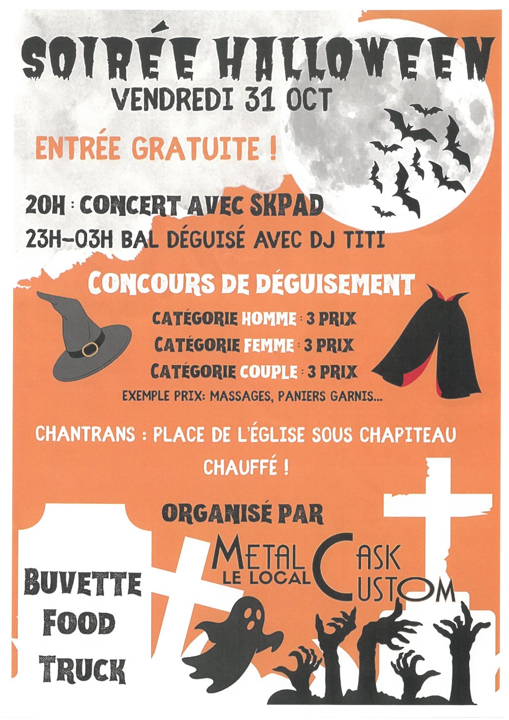 L'Association Métal Cask Custom organise une soirée HALLOWEEN à Chantrans, sur la Place de l’Église, sous chapiteau chauffé, le vendredi 31 octobre.