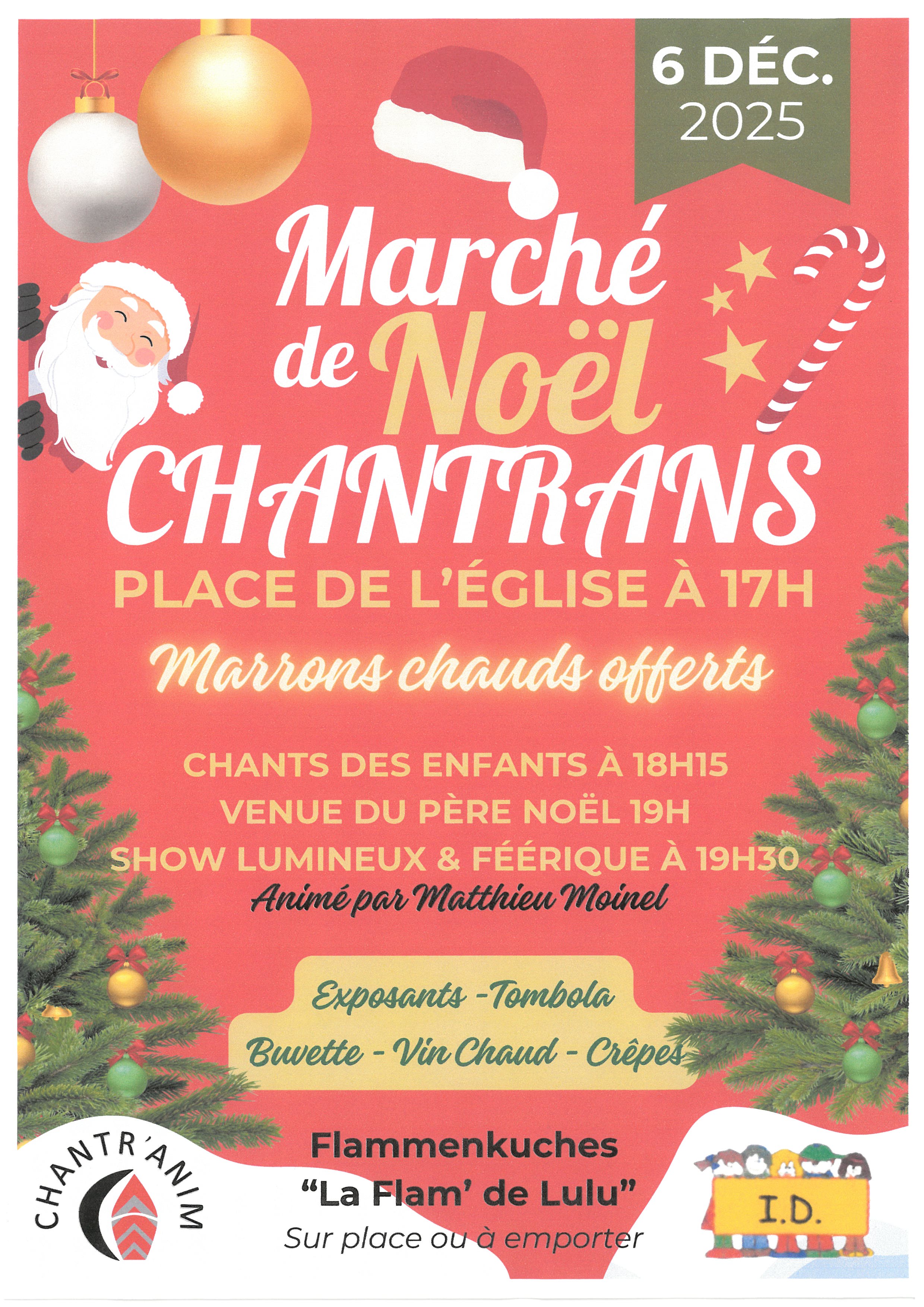 Le marché de Noël de CHANTRANS aura lieu le 6 décembre sur la Place de l’Église, à partir de 17h ! 🎅