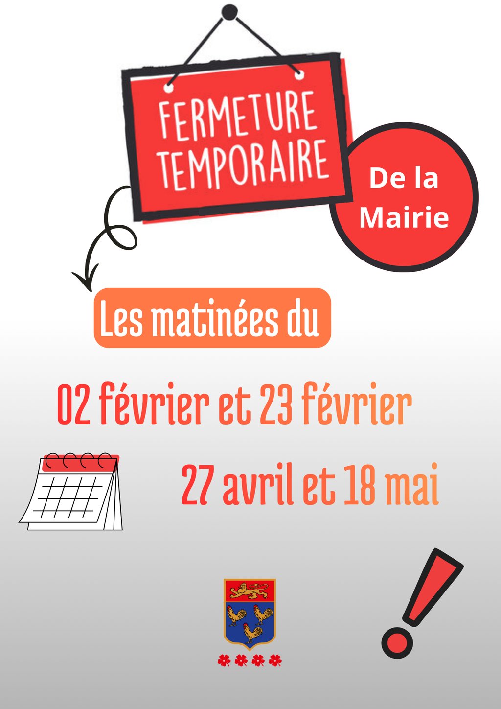 FERMETURE EXCEPTIONNELLE DE LA MAIRIE