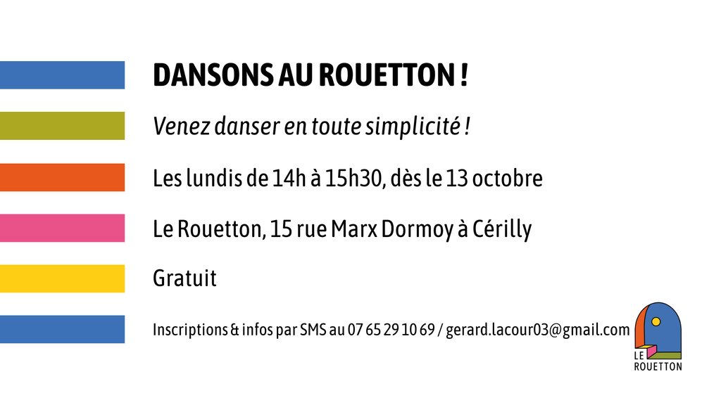 Inscriptions & renseignements par SMS/ mail auprès de Gérard au 07 65 29 10 69 / gerard.lacour03@gmail.com (places limitées à 10 couples)