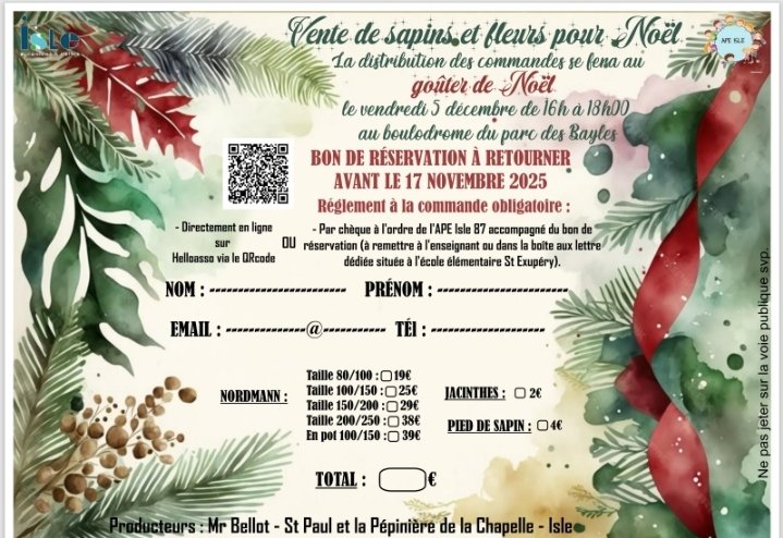🎅 L'Amicale des Parents d’élèves organise une vente de sapins et fleurs de Noël. 🎄