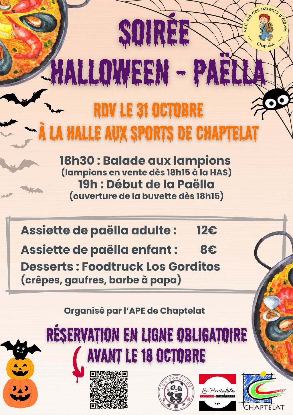 L'APE de Chaptelat organise une soirée Halloween-Paëlla le 31 octobre à la Halle aux sports.