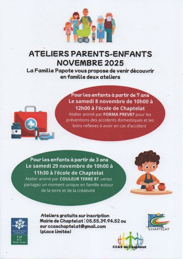 Ateliers gratuits sur inscription : ccaschaptelat@gmail.com ou 05.55.39.94.52