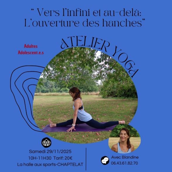L'atelier du corps vous propose un atelier de yoga le samedi 29 novembre de 10h à 11h30 à la Halle aux sports.