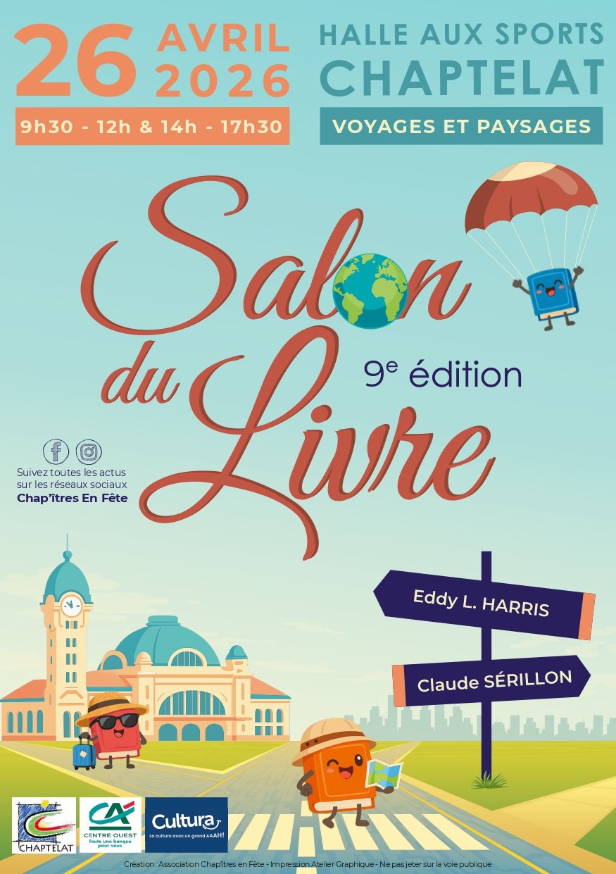 L'association Chap'itres en fête organise son 9ème salon du livre le dimanche 26 avril 2026 à la halle aux sports.