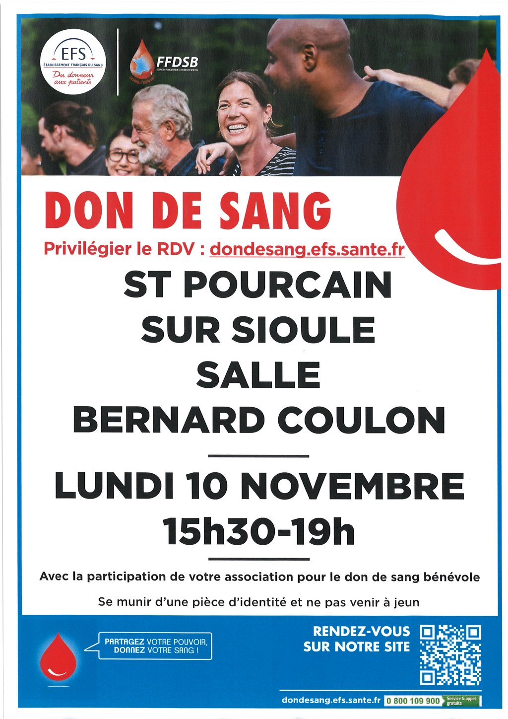 Don du sang à St Pourçain sur Sioule , salle Bernard COULON