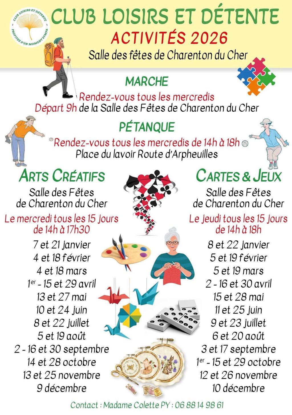 CLUB LOISIRS ET DÉTENTE - CALENDRIER DES ACTIVITÉS 2026