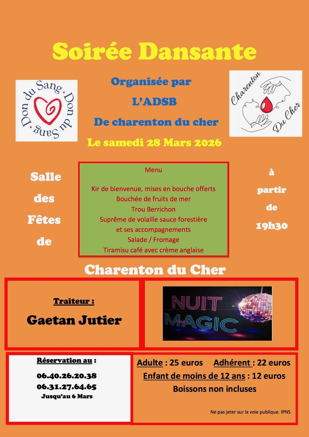 Soirée dansante organisée par l’ADSB de Charenton du Cher