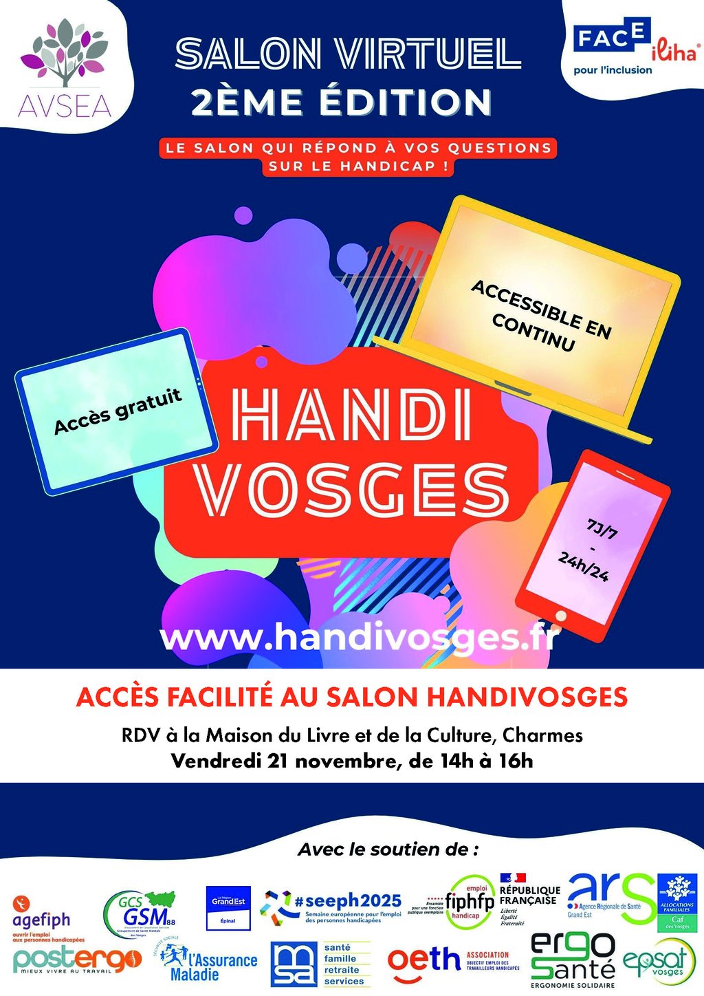 Le salon est ouvert toute la journée du vendredi 21/11 et nous vous proposons de vous aider à naviguer dans ce salon virtuel. Pour cela, RDV à la bibliothèque de Charmes entre 14h et 16h.