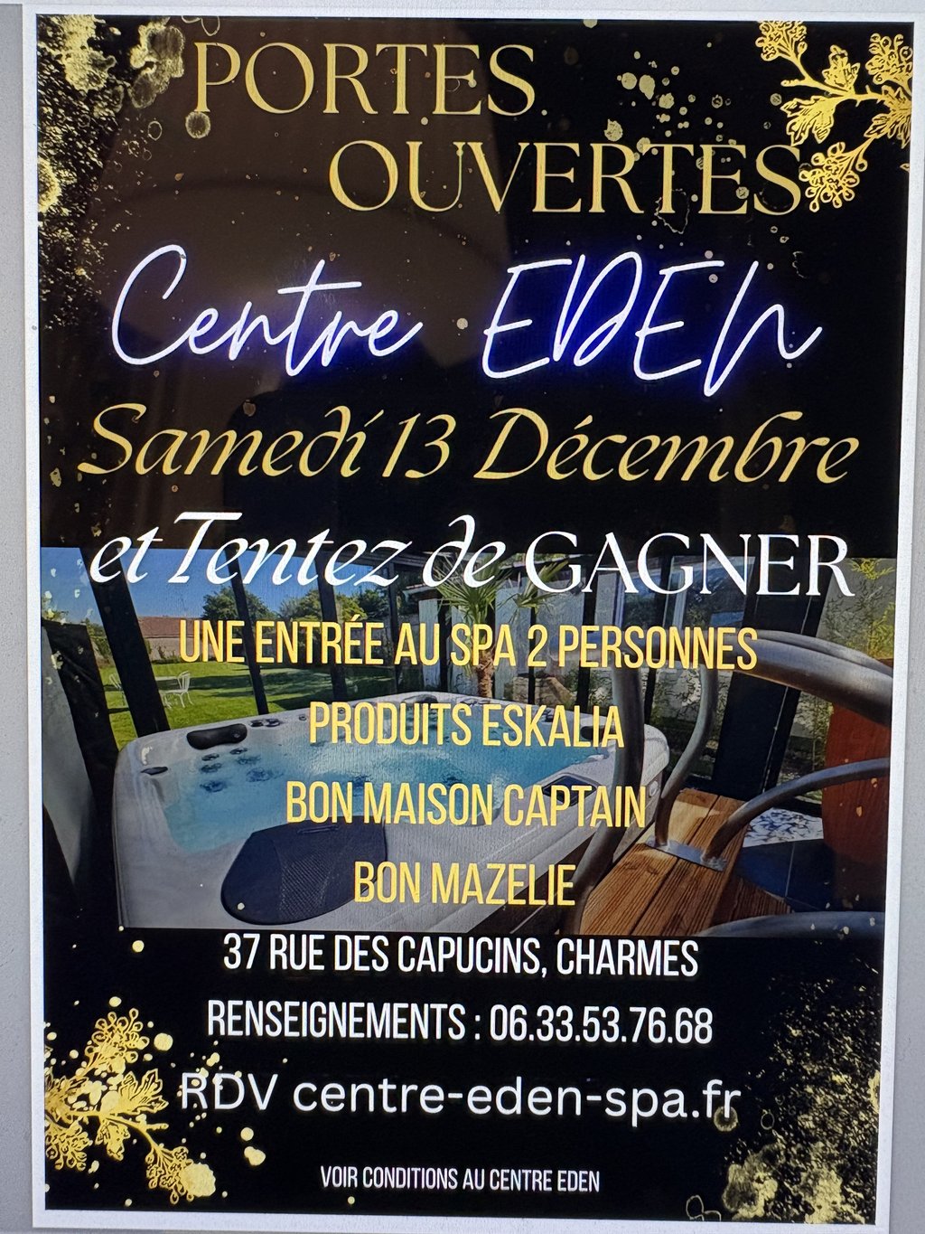 On a hâte de vous accueillir ✨. #CentreEden #Charmes #PortesOuvertes #TombolaNoel #Eskalia #Cosmétiques #SpaVosges #IdeeCadeau #Noel2025 #BienEtre