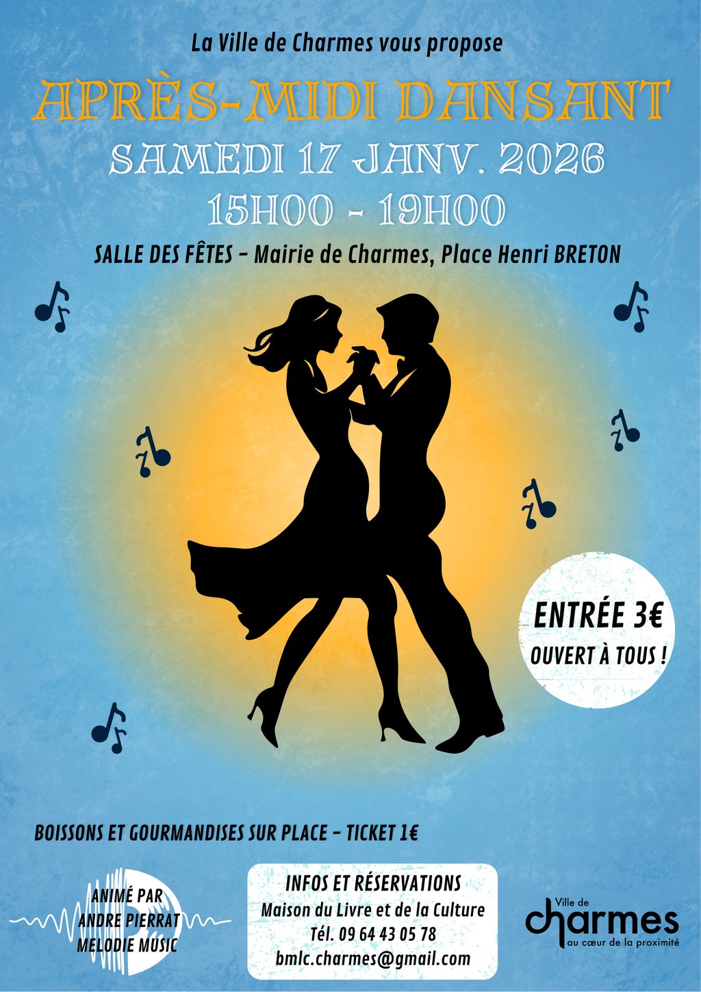 Samedi 17 janvier à 15h00, après-midi dansant organisé par le CCAS de la ville de Charmes.