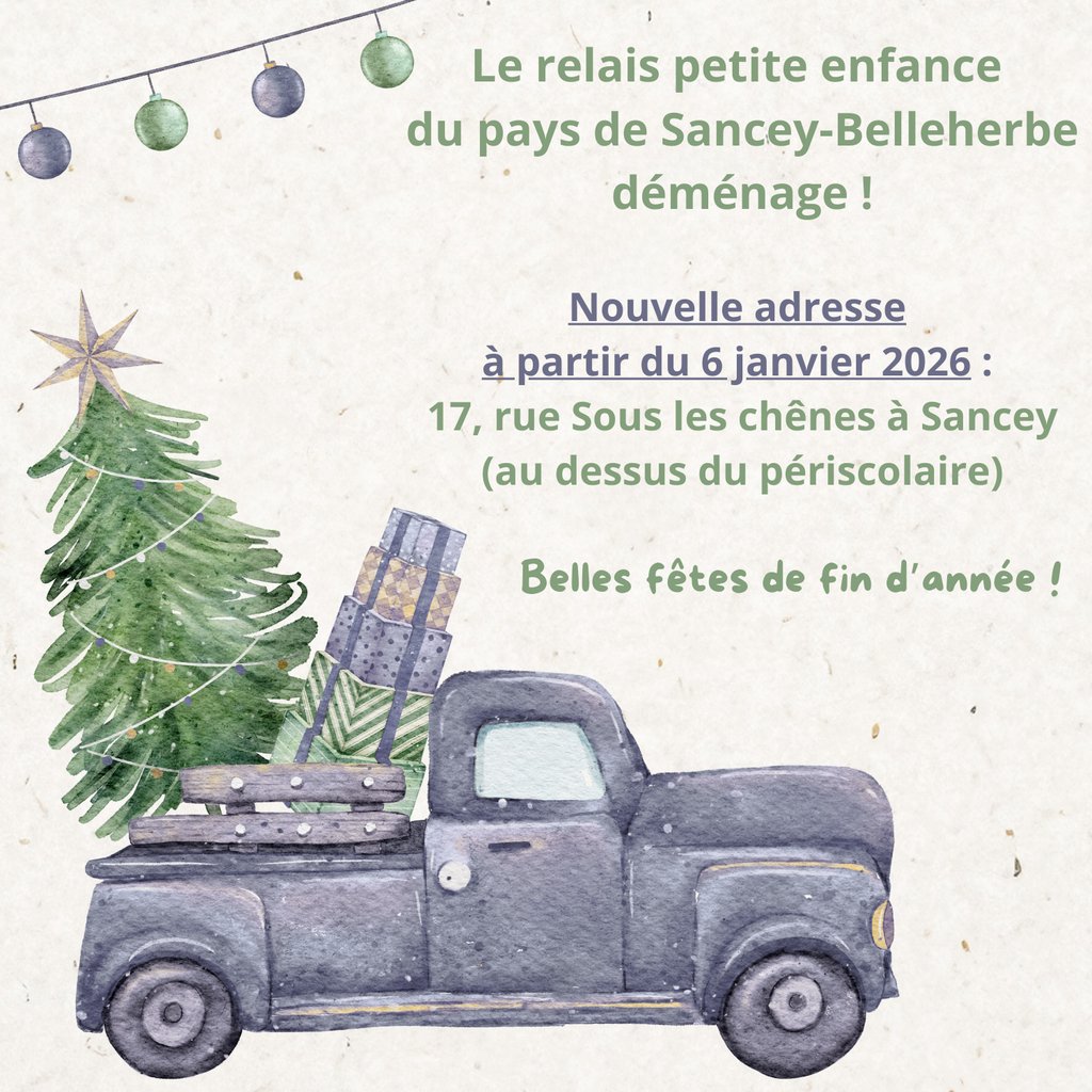Nouvelle adresse à partir du 6 janvier 2026 : 17, rue Sous les chênes à Sancey (au dessus du périscolaire)