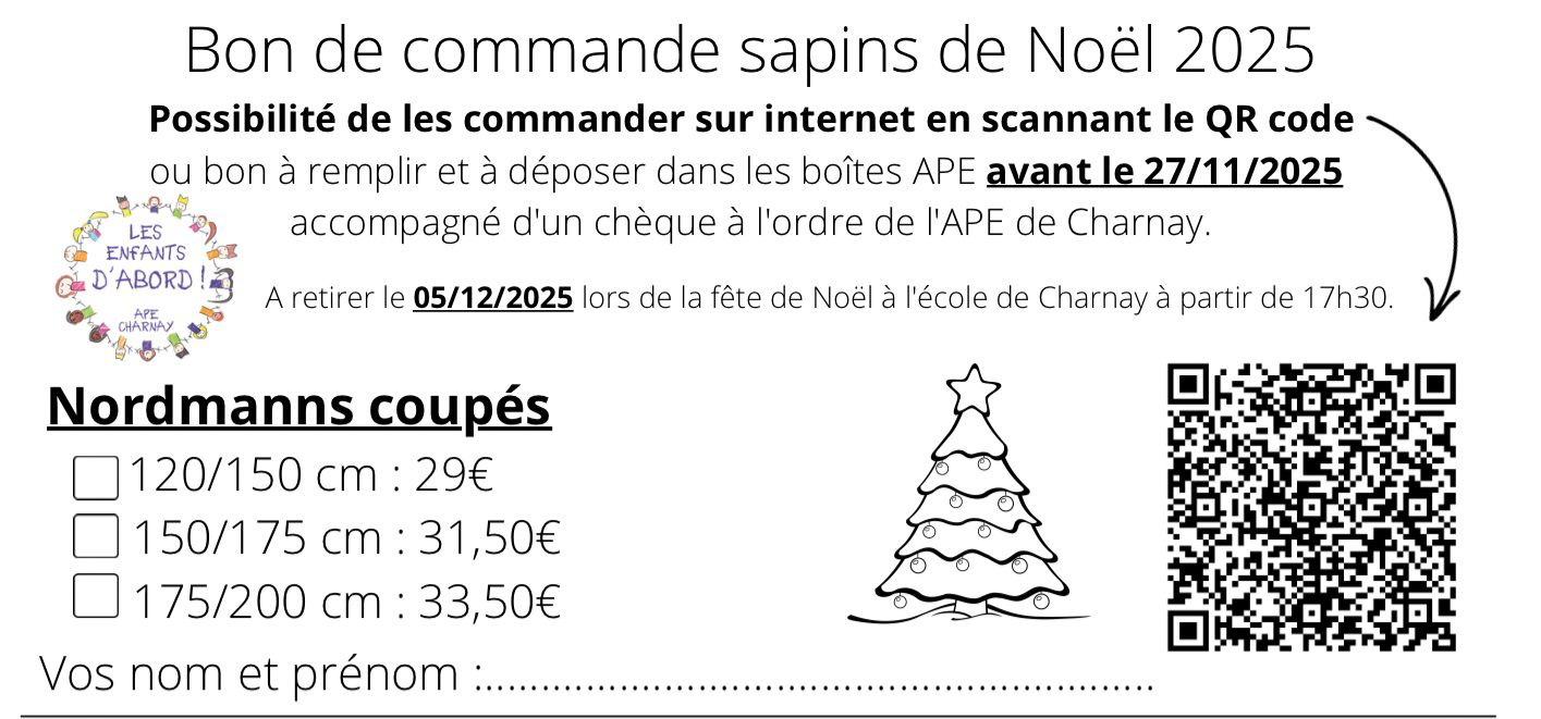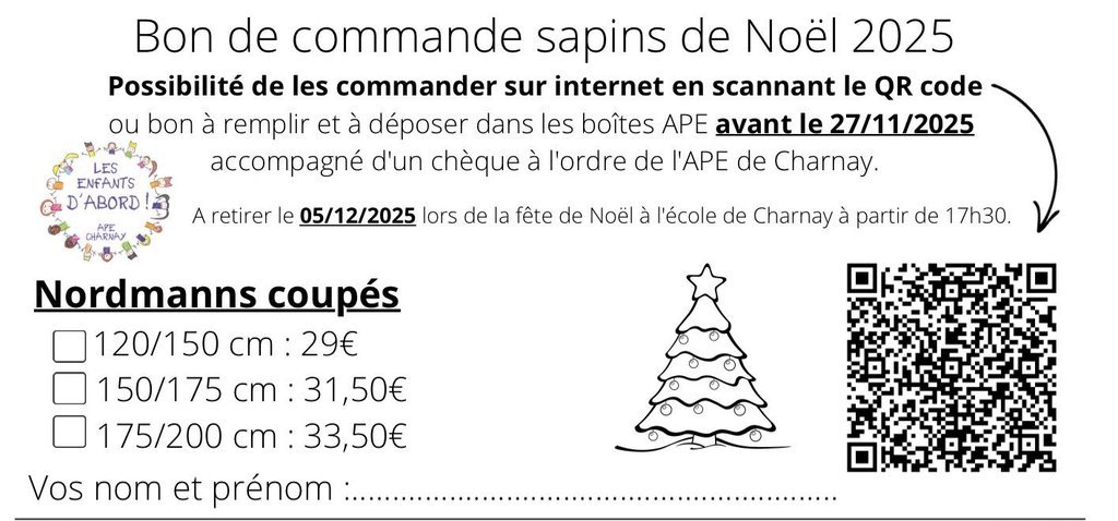 đ LâAPE vous rappelle la vente de sapins de NoĂ«l au profit de lâĂ©cole de Charnay !