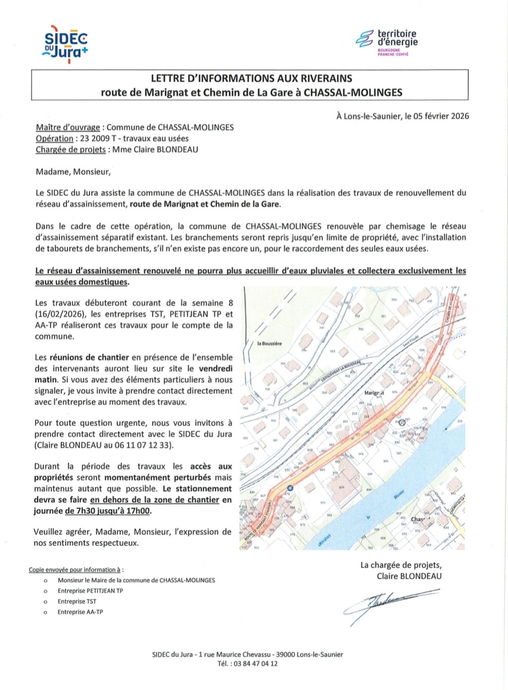Ces travaux seront réalisés par les entreprises TST, Petitjean TP et AA‑TP, sous la maîtrise d’ouvrage de la commune et avec l’accompagnement du SIDEC du Jura.