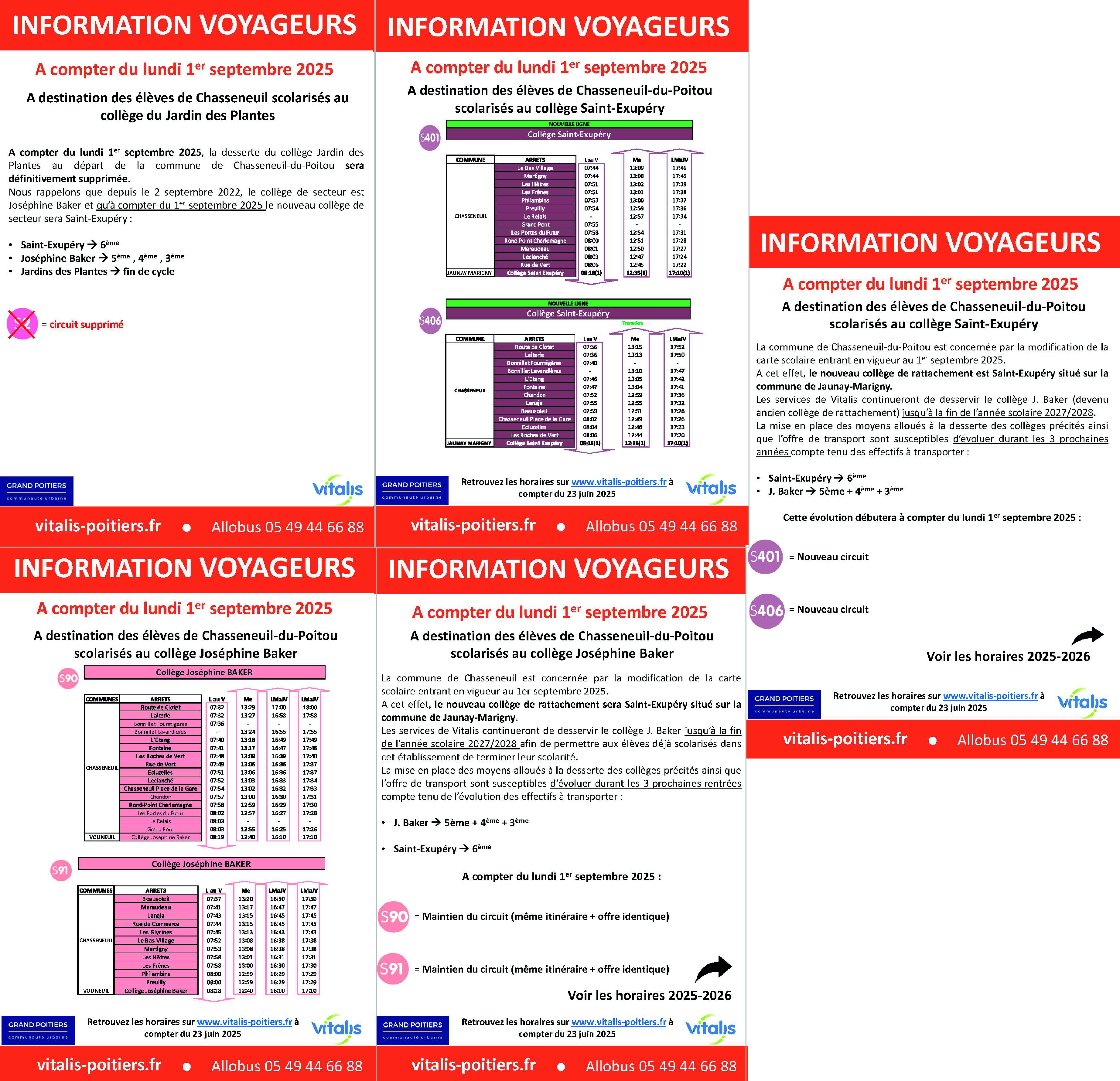 Une desserte à destination du nouveau collège de rattachement (Saint-Exupéry) sera créée et la desserte à destination de l’ancien collège (Joséphine Baker) sera maintenue à compter du lundi 1er septembre 2025 (voir flyers).