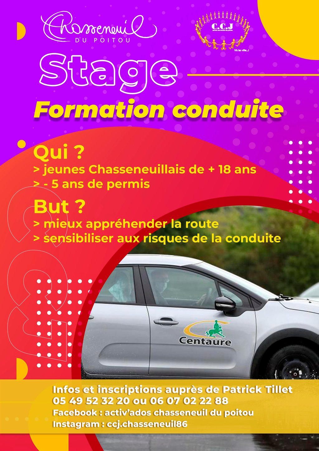 La Mairie, en partenariat avec Centaure, propose aux habitants un stage de conduite gratuit, qui se déroulera à la fin du mois de septembre/début octobre.