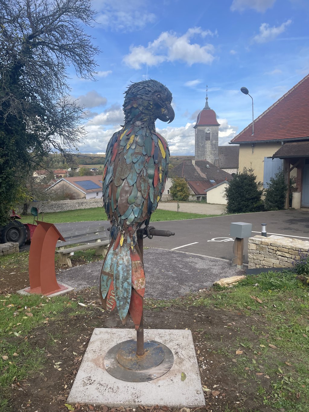 l'histoire :Les habitants de Chassey-lès - Montbozon découvrent qu’un grand perroquet se balade dans le village et provoque quelques désagréments.