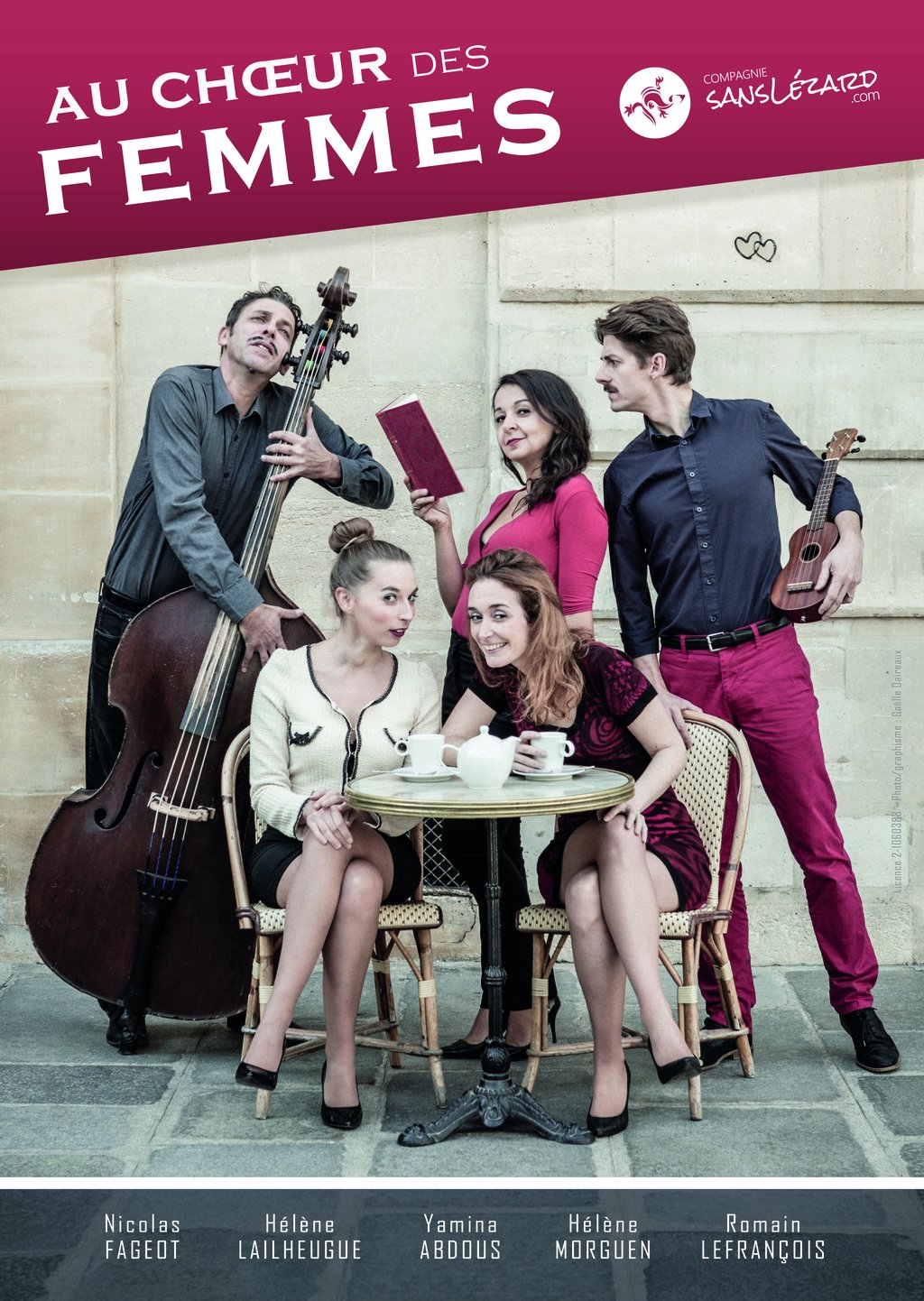 Chant : Hélène Morguen, Yamina Abdous, Hélène Lailheugue, Romain Lefrançois, Bruno Lebris / Violon : Hélène Lailheugue / Piano, guitare, ukulélé : Romain Lefrançois / Contrebasse, percussions, guitare : Bruno Lebris.
