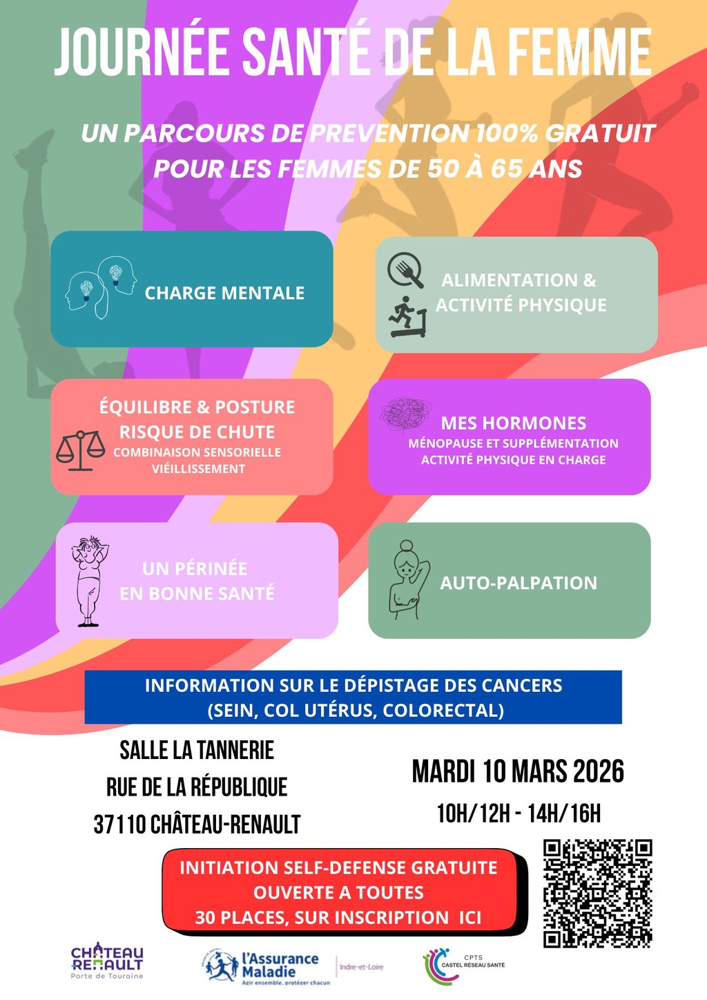 Durant cette journée, vous pourrez découvrir et participer à différents ateliers : l'alimentation et l'activité physique, la charge mentale, la ménopause et ses conséquences, un périnée en bonne santé, équilibre et posture, prévention des chutes, dépistage des cancers avec la possibilité de faire un frottis, un atelier d'autopalpation et la prévention du cancer colorectal.