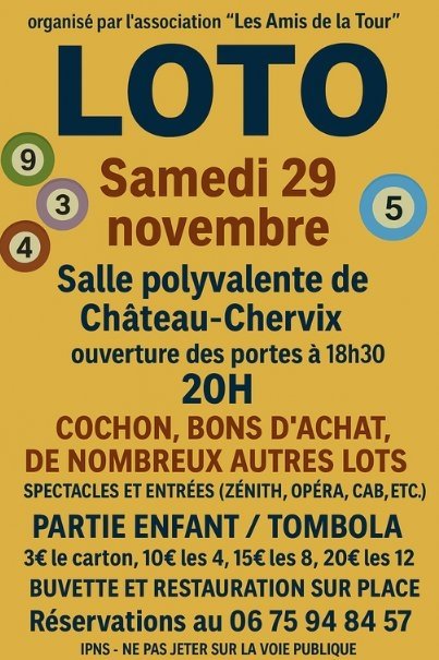 Salle polyvalente de Château-Chervix ouverture des portes à 18h30