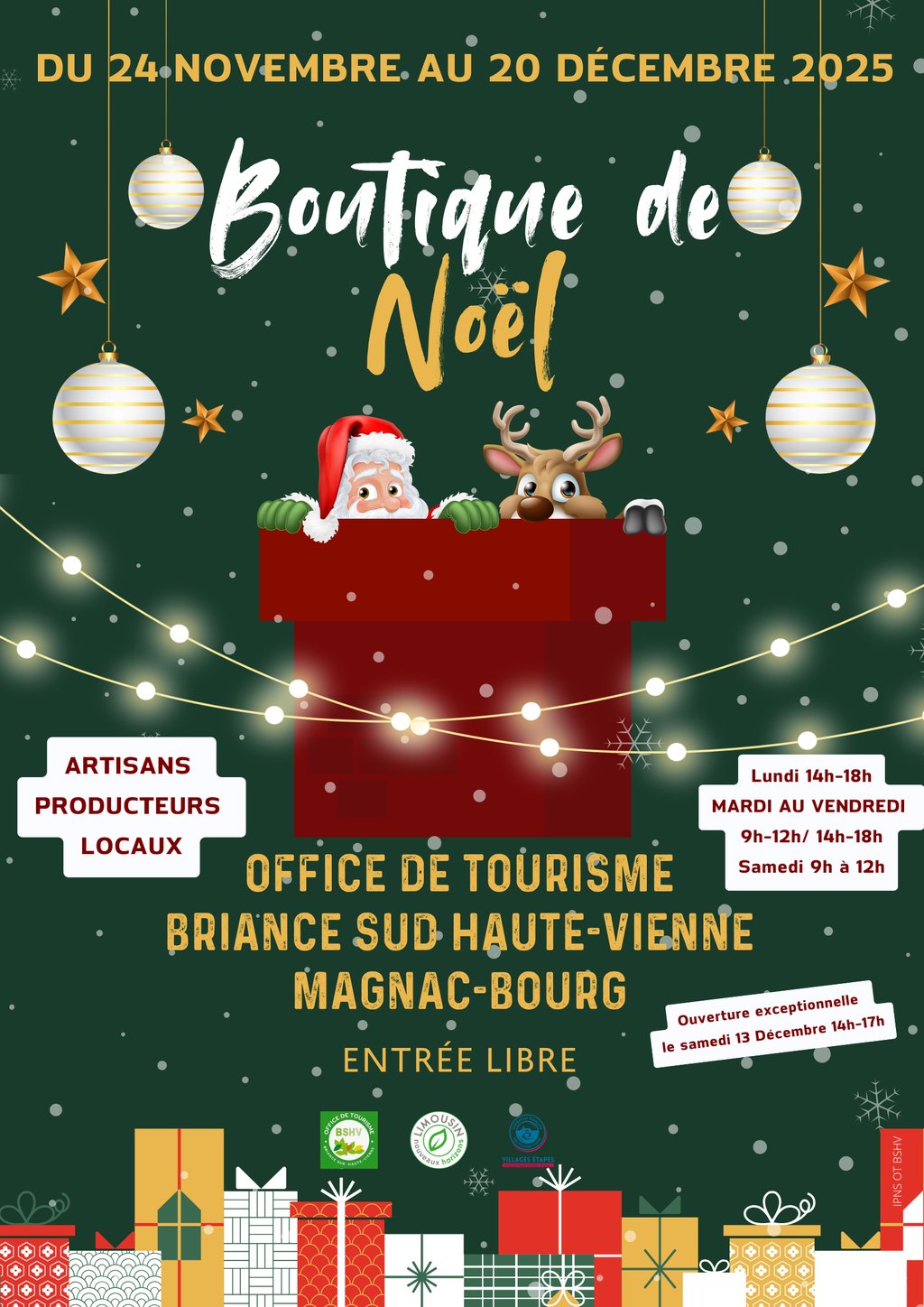 La boutique de Noël ouvre ses portes aujourd'hui à l'Office de tourisme BSHV à Magnac-Bourg.