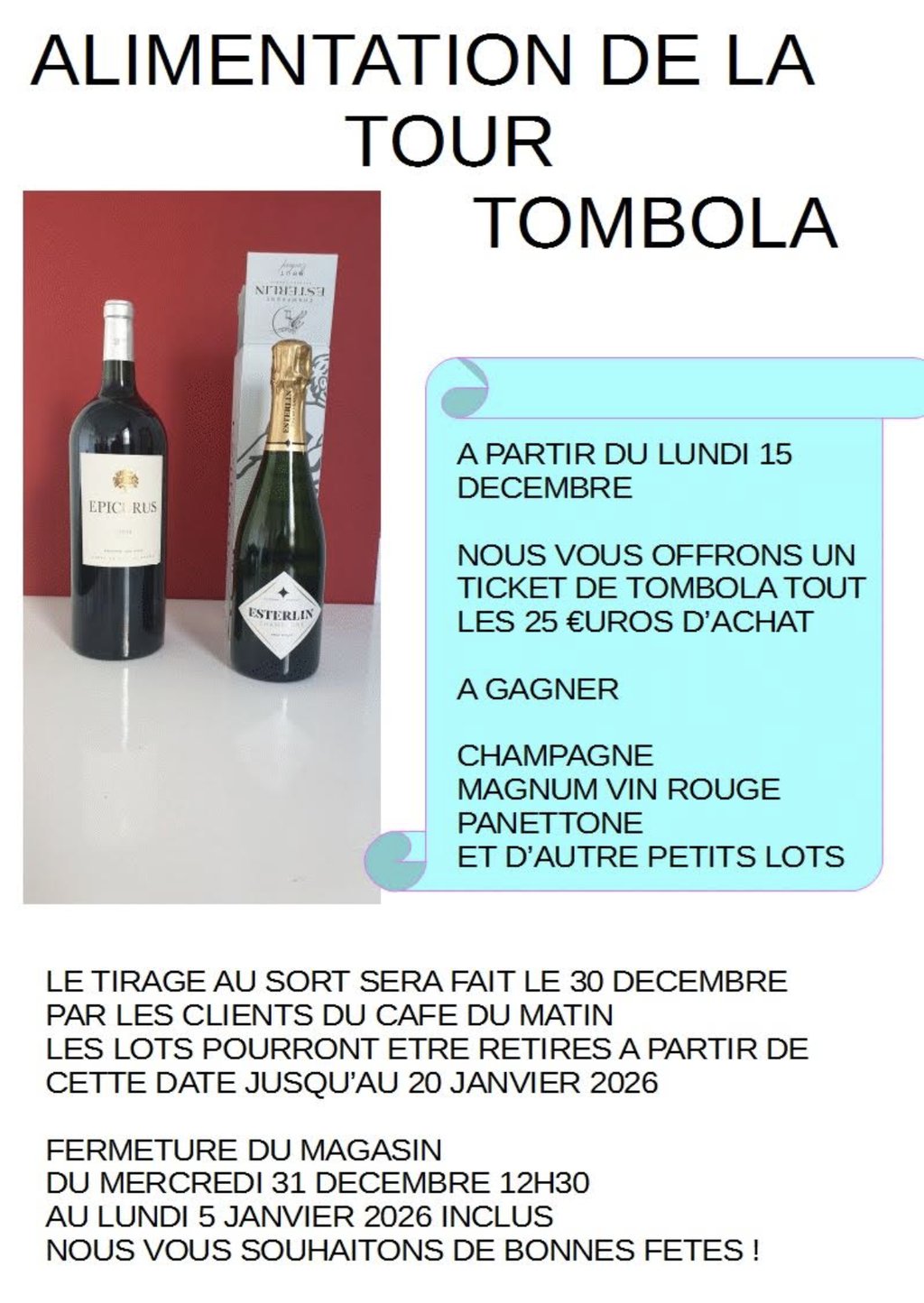 NOUS VOUS OFFRONS UN TICKET DE TOMBOLA TOUT LES 25 €UROS D'ACHAT