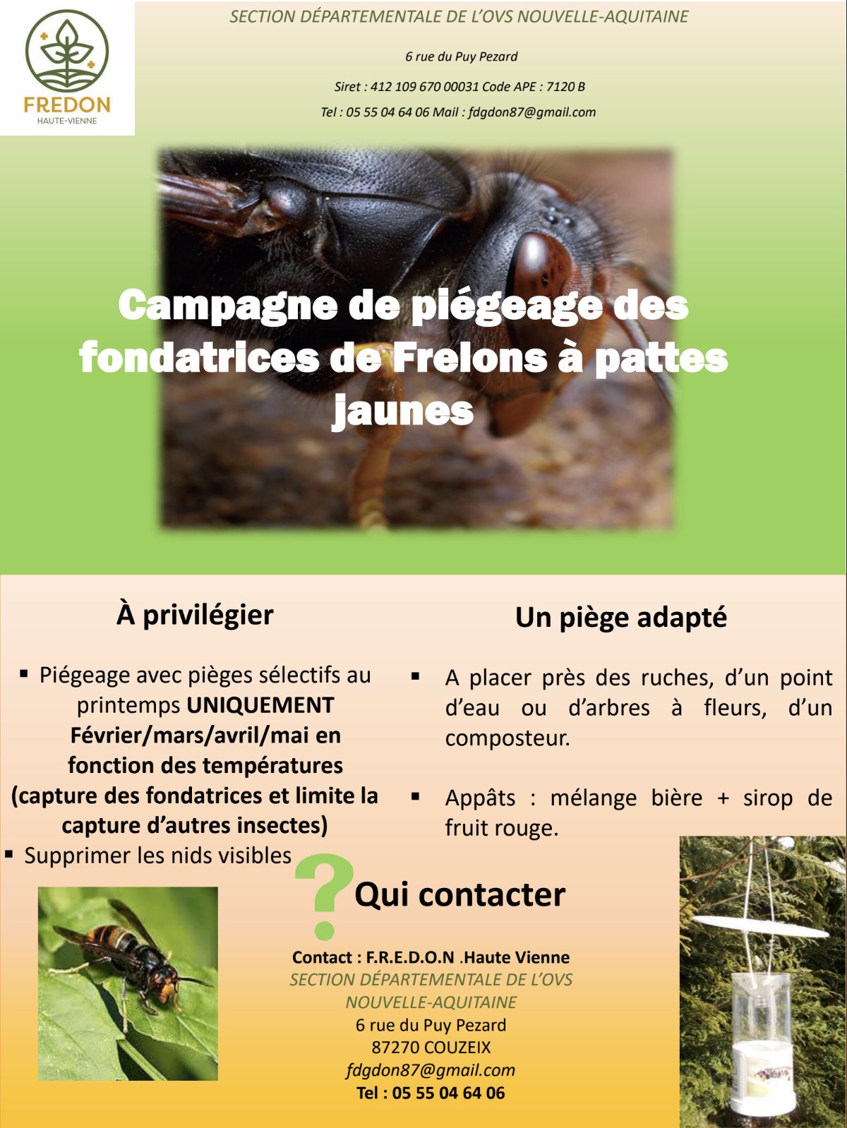 CAMPAGNE DE PIÉGEAGE DES FONDATRICES DE FRELONS À PATTES JAUNES