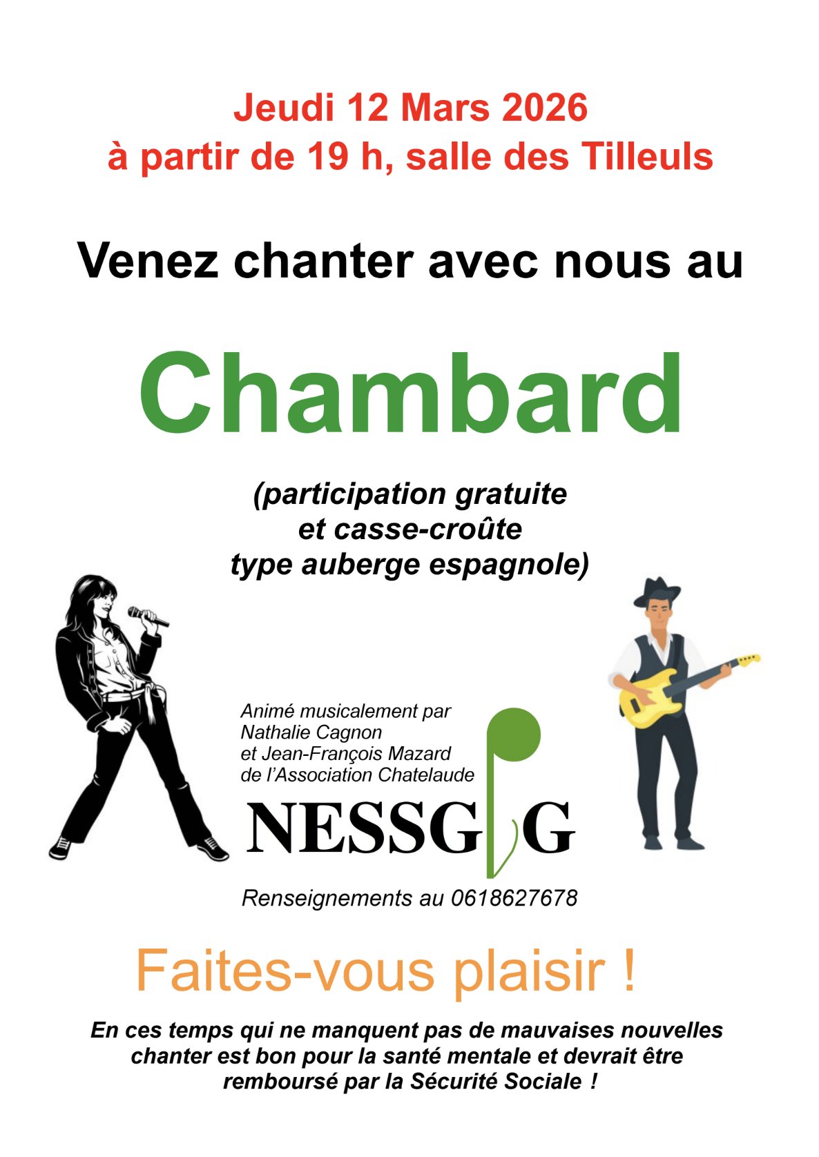 Jeudi 12 Mars 2026 à partir de 19 h, salle des Tilleuls