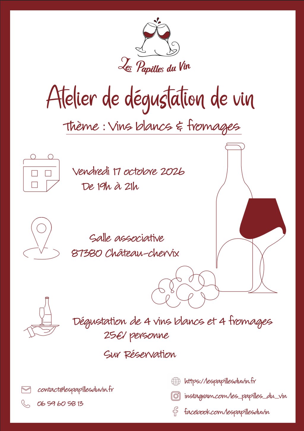 Sur Réservation : contact@lespapillesduvin.fr / 0659605813