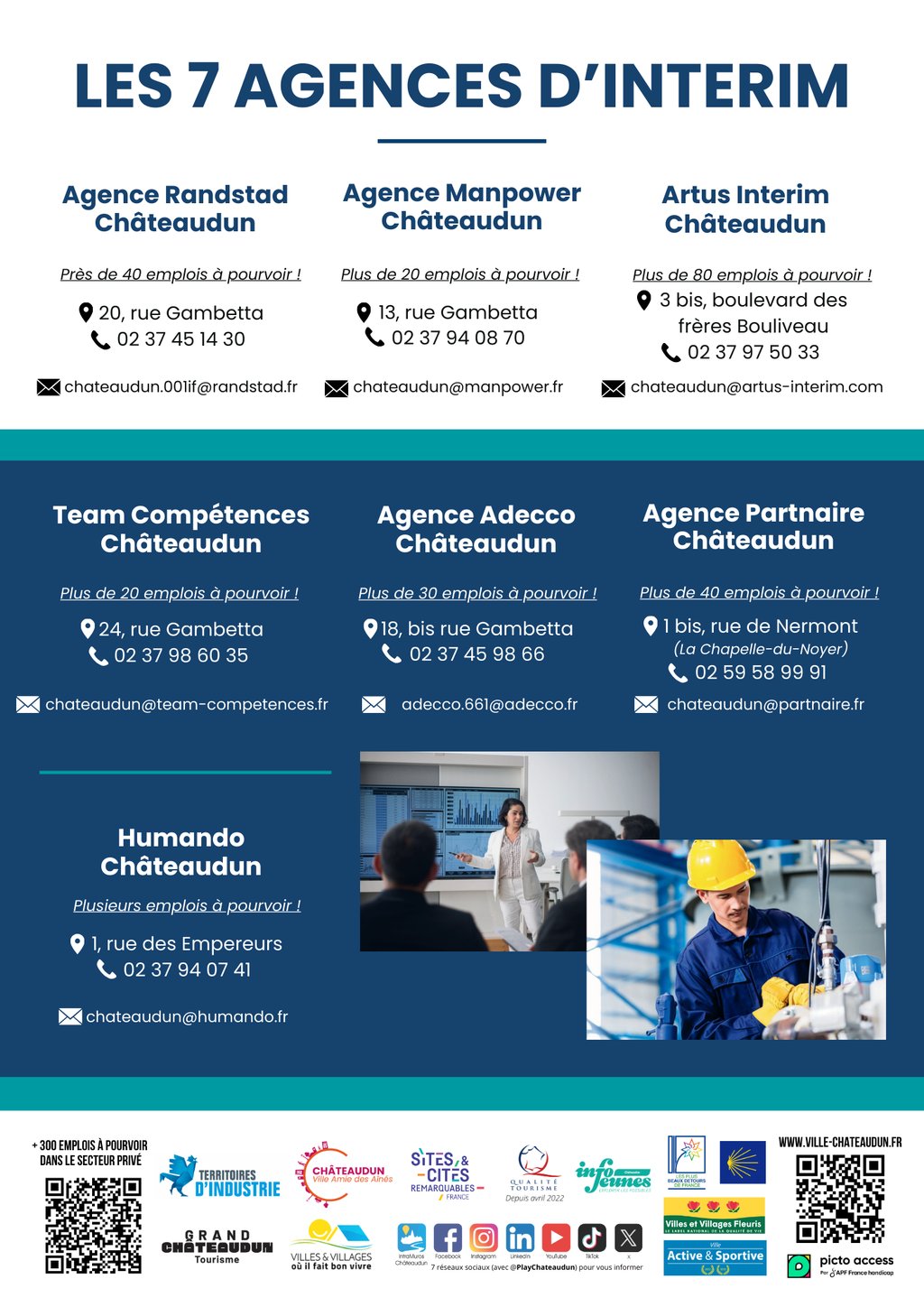 Retrouvez le flyer des 7 agences d'intérim à Châteaudun ci-dessous 👇
