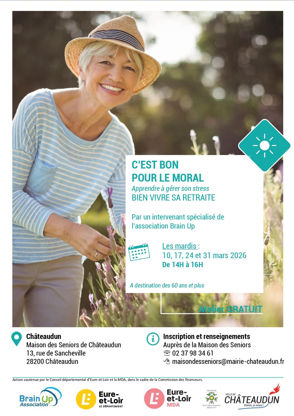 La Ville de Chùteaudun propose un atelier dédié aux 60 ans et plus pour apprendre à mieux gérer son stress et bien vivre sa retraite.