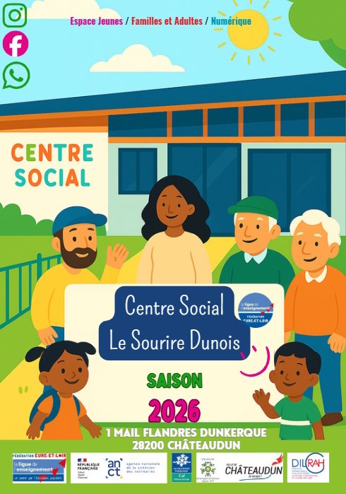 Le Sourire Dunois est un centre social situé au cœur du quartier Beauvoir à Châteaudun. Ouvert à tous, il a pour mission de renforcer les liens sociaux, de favoriser la participation citoyenne et d’accompagner les habitants dans leur quotidien, quel que soit leur âge, leur origine ou leur parcours.