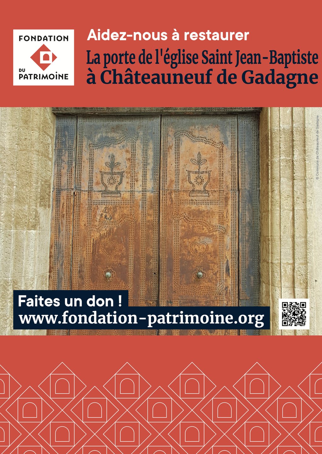 Au cœur de Châteauneuf-de-Gadagne, l’église Saint-Jean-Baptiste fait partie de notre histoire, de notre vie quotidienne. Sa grande porte en bois recouverte d’un placage métallique clouté est abîmée par le temps : fissures, déformations, décor usé…