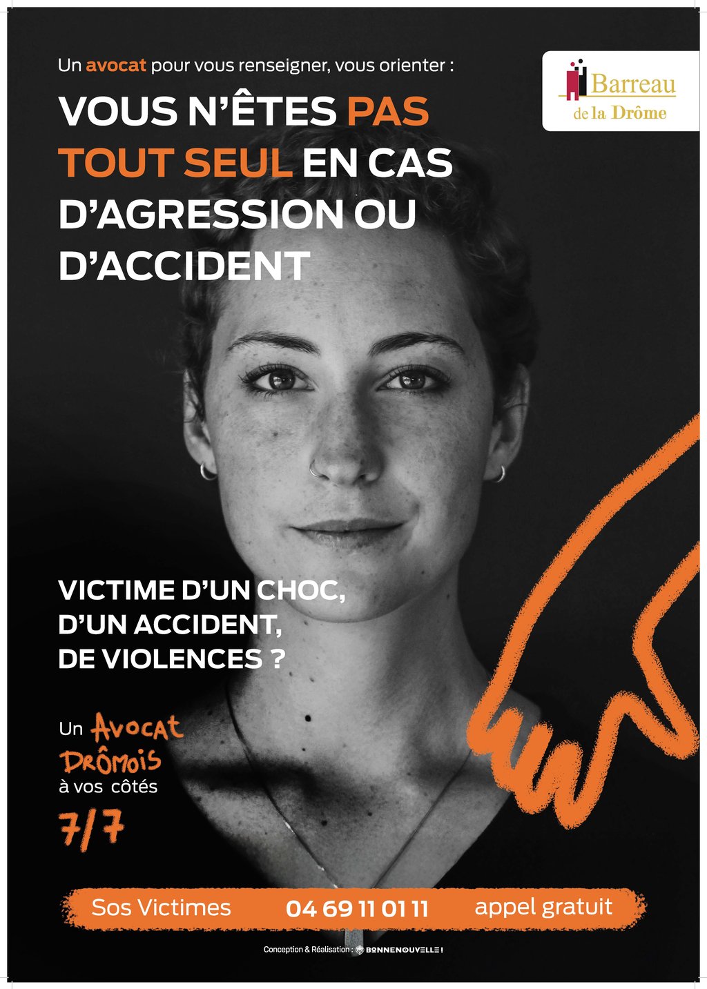 𝘝𝘪𝘤𝘵𝘪𝘮𝘦 𝘥’𝘶𝘯 𝘢𝘤𝘤𝘪𝘥𝘦𝘯𝘵, 𝘥’𝘶𝘯 𝘤𝘩𝘰𝘤, 𝘥𝘦 𝘷𝘪𝘰𝘭𝘦𝘯𝘤𝘦𝘴 ? Un 𝗮𝘃𝗼𝗰𝗮𝘁 𝗱𝘂 𝗕𝗮𝗿𝗿𝗲𝗮𝘂 𝗱𝗲 𝗹𝗮 𝗗𝗿𝗼̂𝗺𝗲 𝗲𝘀𝘁 𝗹𝗮̀ 𝗽𝗼𝘂𝗿 𝘃𝗼𝘂𝘀 𝟳𝗷/𝟳 – 9𝗵 à 18h grâce au service SOS Victimes.