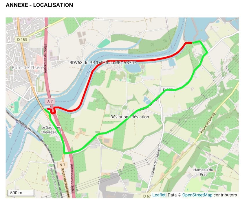 Les travaux seront exécutés entre le lundi 01 décembre 2025 et le vendredi 19 décembre 2025 sur la RDV63 du PR 1+133 au PR 1+3707 sur le territoire de la commune de CHÂTEAUNEUF-SUR-ISÈRE, hors agglomération.