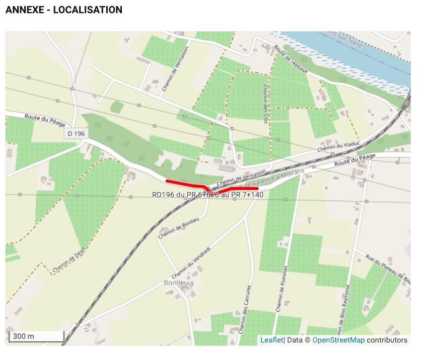 Les travaux susvisés seront exécutés entre le lundi 15 décembre 2025 et le jeudi 18 décembre 2025 sur la RD196 du PR 6+616 au PR 7+140 sur le territoire de la commune de CHÂTEAUNEUF-SURISÈRE, hors agglomération.