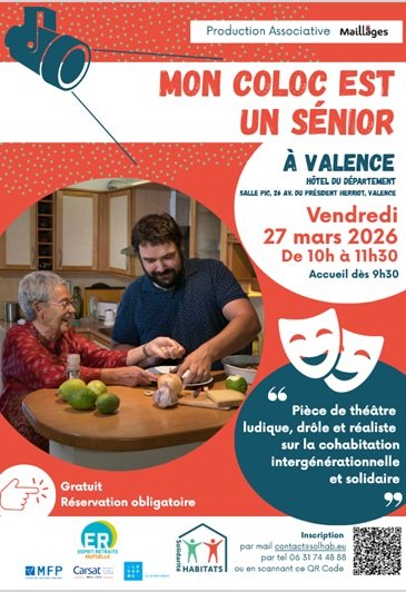 ➡️ Solidarité HABITATS, en partenariat avec Esprit Retraite et l'association Maillâges, vous invite à assister à une représentation théâtrale avec intermèdes musicaux : « Mon coloc est un senior »