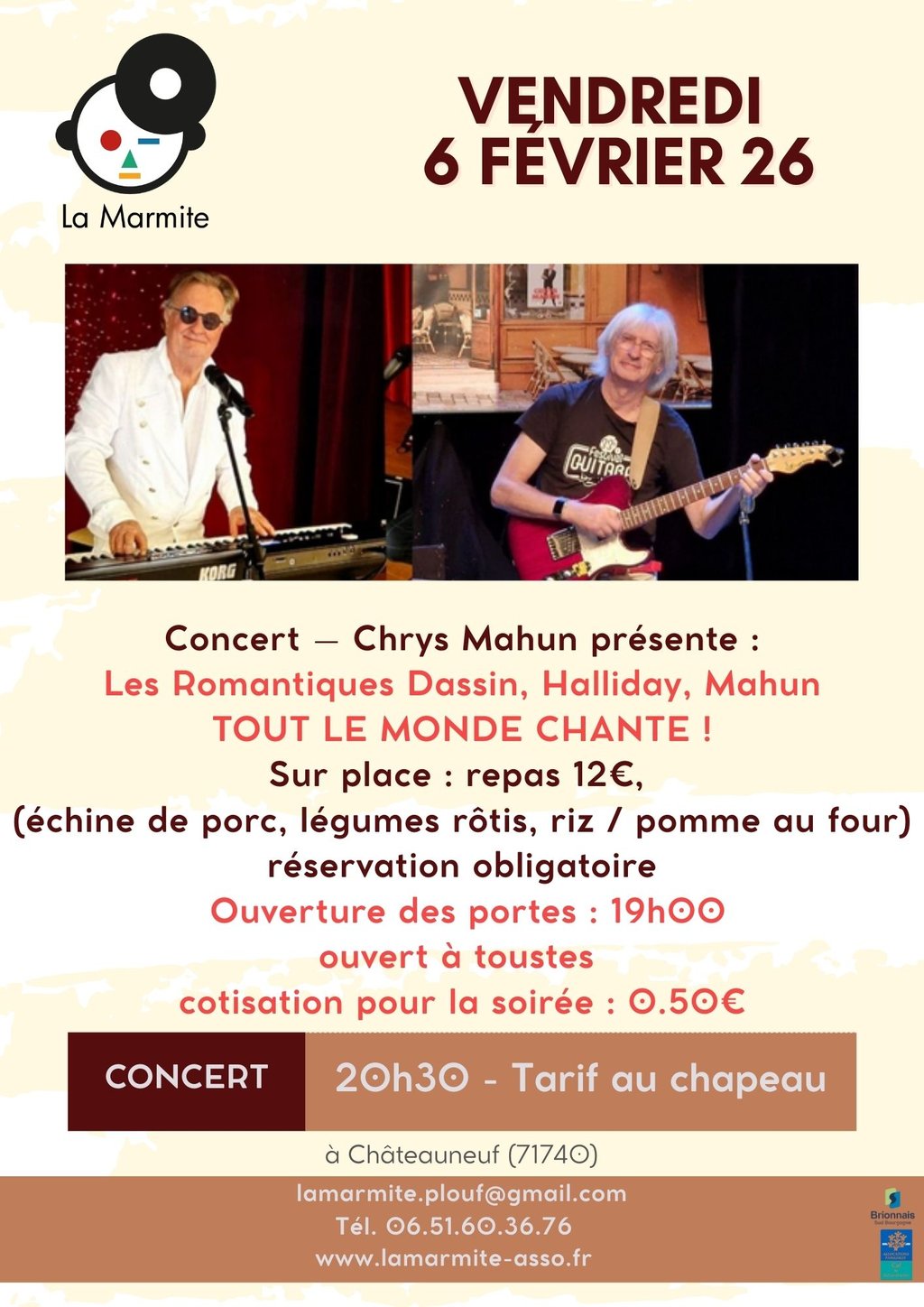 Sur place : repas 12€,