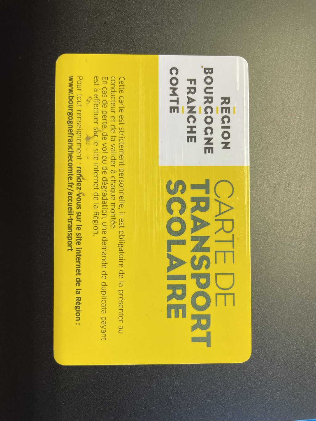 Une carte de transport scolaire pour le collège/lycée des chaumes à Avallon nous a été déposé en Mairie.