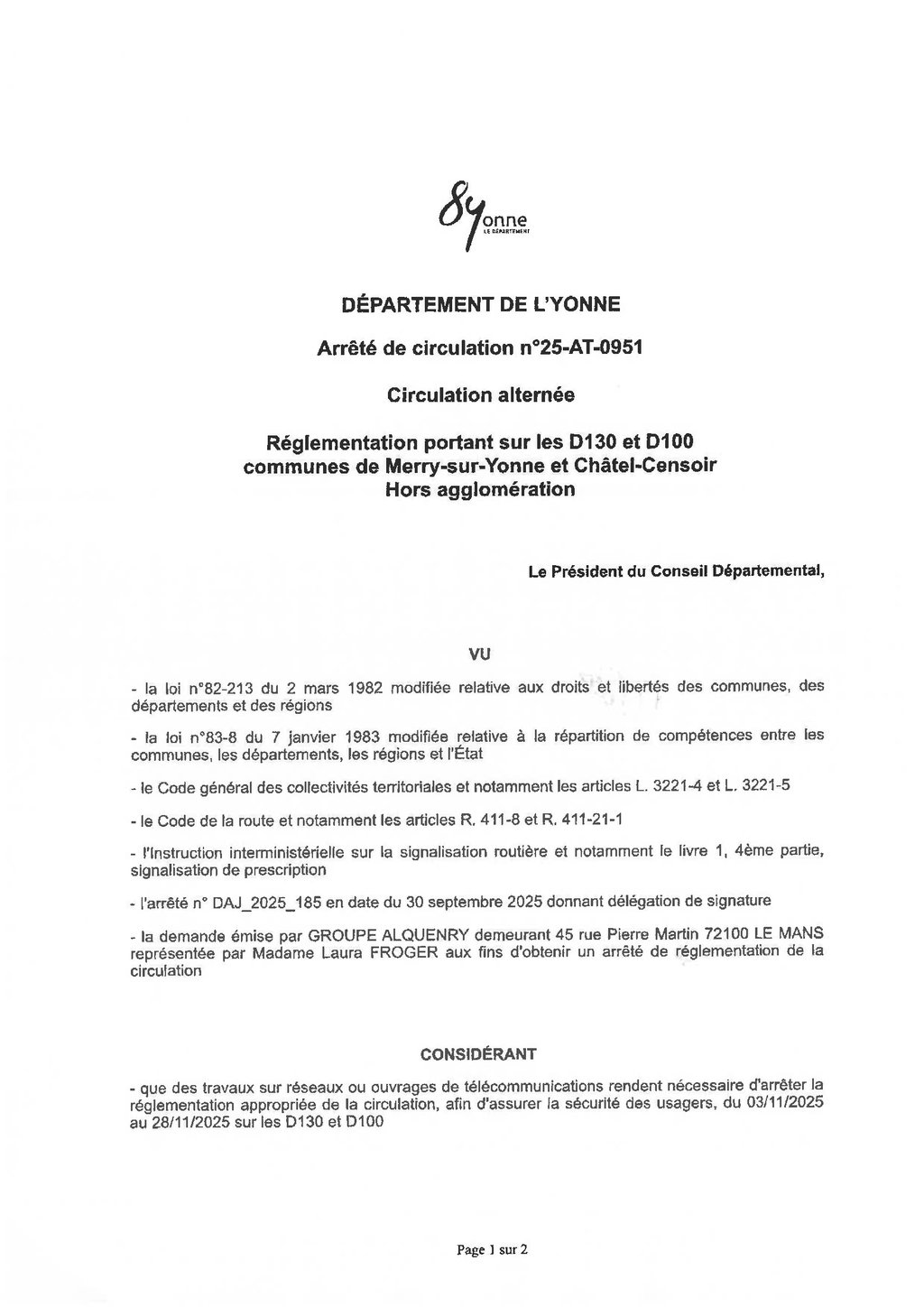 ARRÊTÉ DE CIRCULATION
